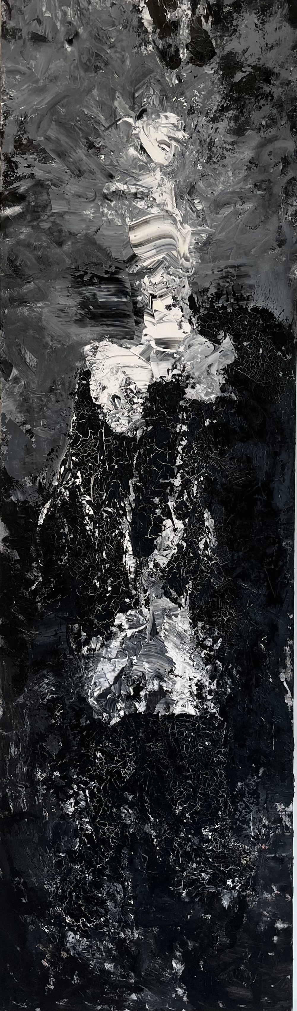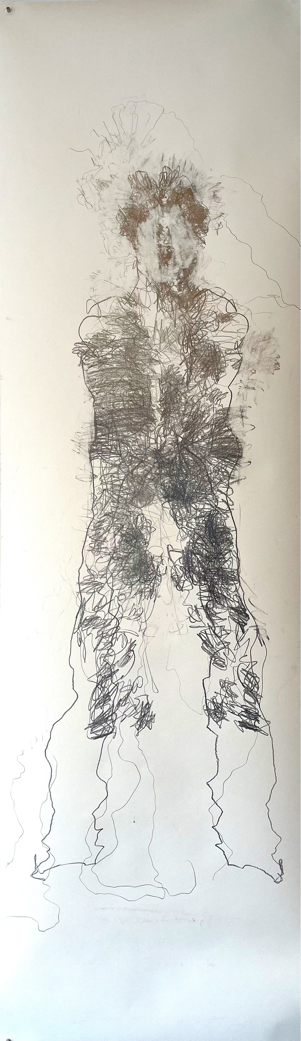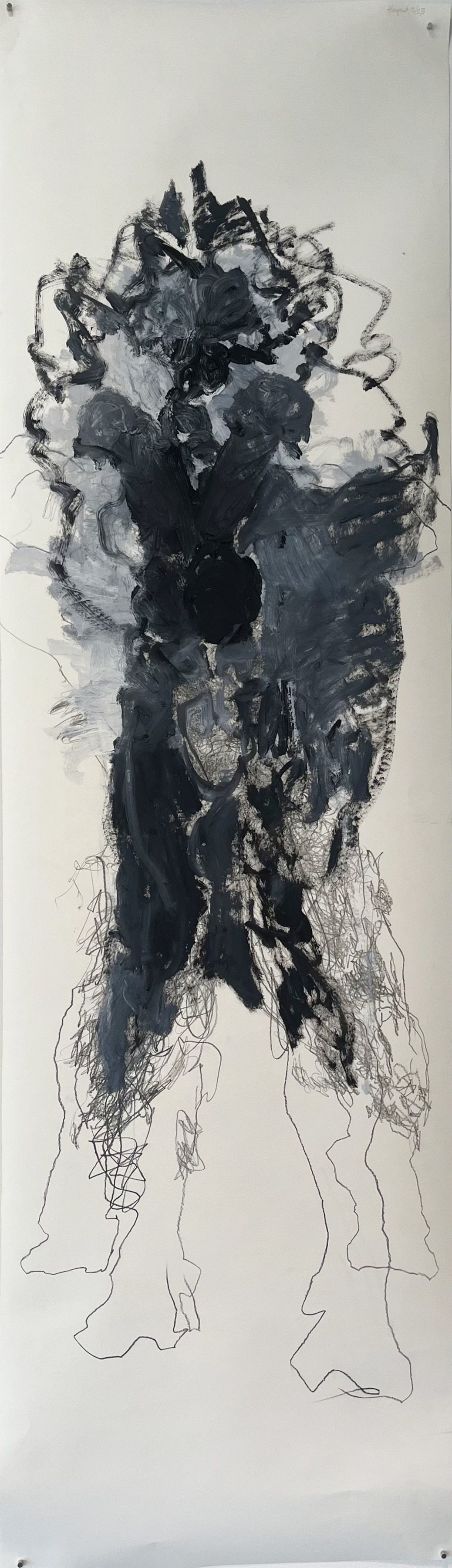 Wayne Herpich’s figurative paintings and drawings are about form. His highly expressive and gestural handling of materials facilitates a psychological understanding of the presence and emotion tied to the figure, granting the viewer just enough detail of form and familiarity. The painted figures depicted emerge from ominous settings, while in contrast his drawn figures stand out and dominate the paper. It’s this play between abstract and representational artmaking that Herpich depicts in these ghostlike forms.
