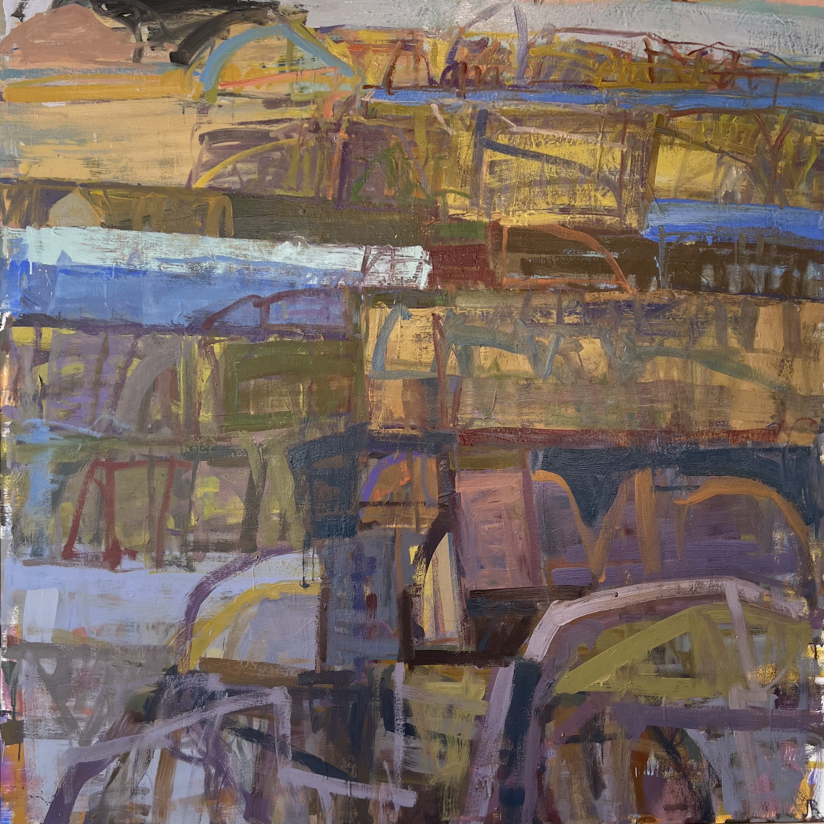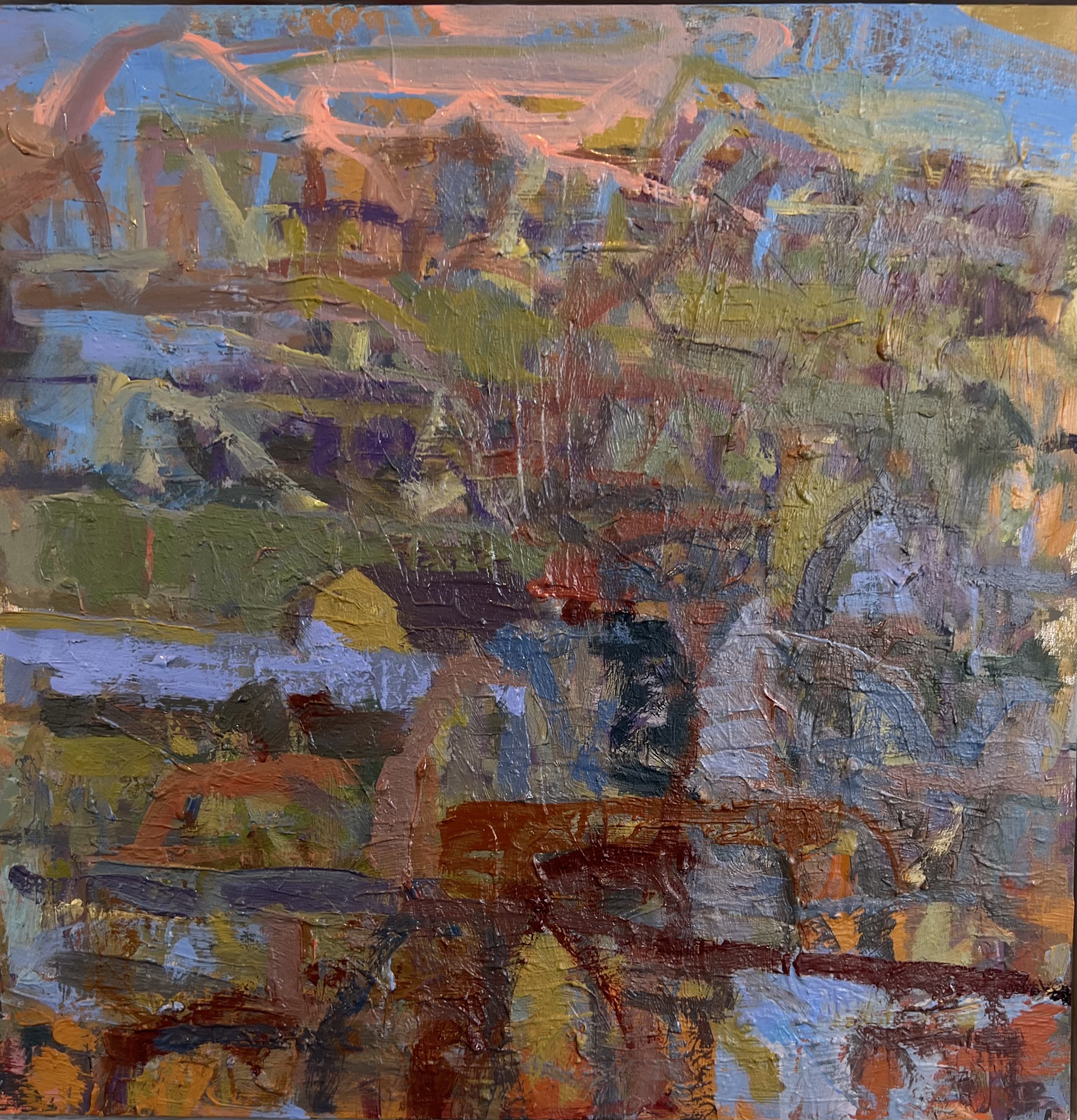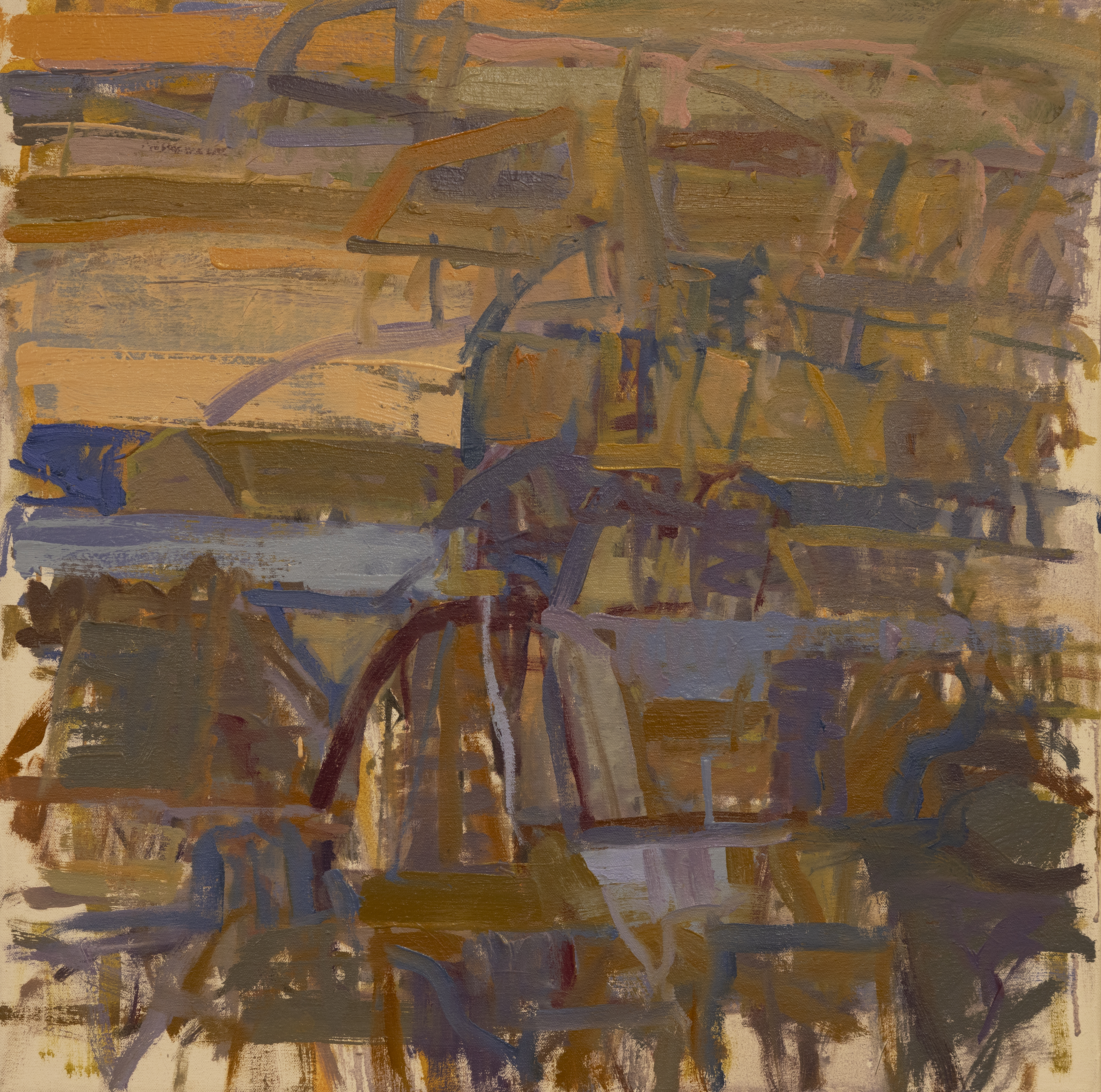 My process begins with repetitive observation—doing on-site studies in the same location and working from them in the studio for a year or longer. This allows me to fully experience and understand the intimacies of place: the particularities of light, atmosphere, land structures, and color. In particular, I am interested how these qualities change over time, how in the short term, how light and atmosphere change constantly over the course of the day. But, also, I wish to explore long-term, over the years, and even centuries or longer, how histories of people lived out in a location, as well as the physical, geological transformations that transpire, are all embedded somehow within the landscape.