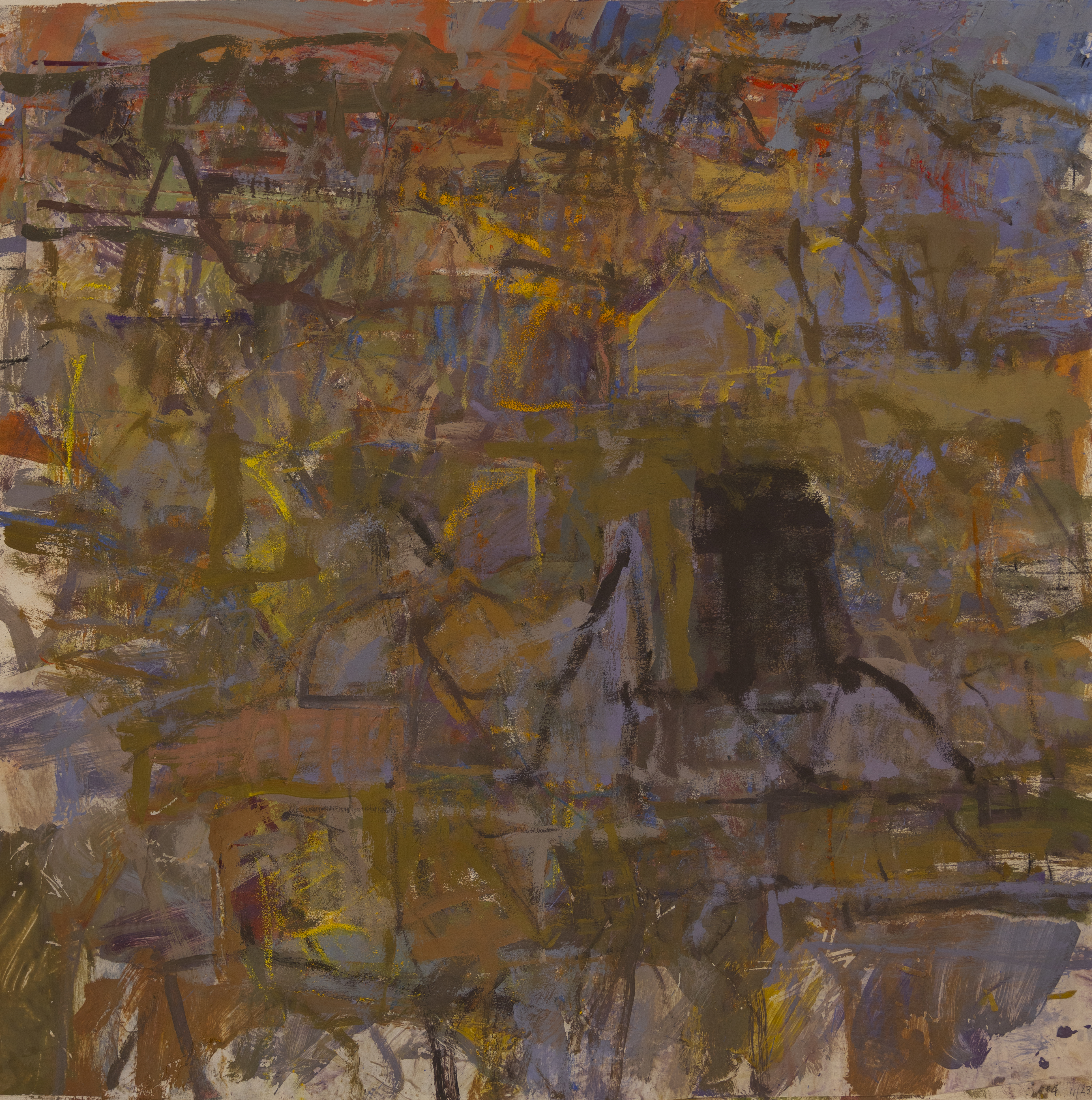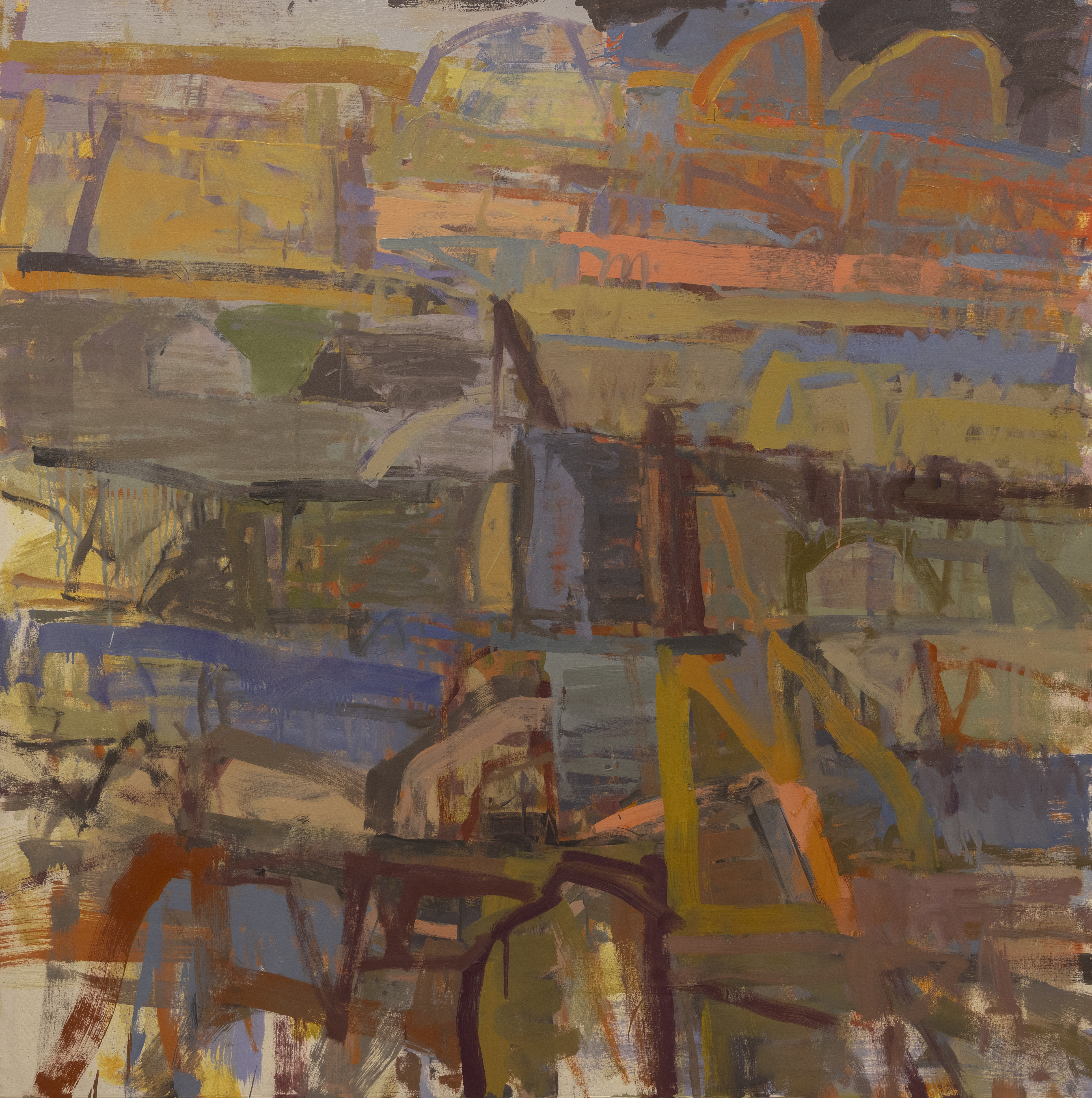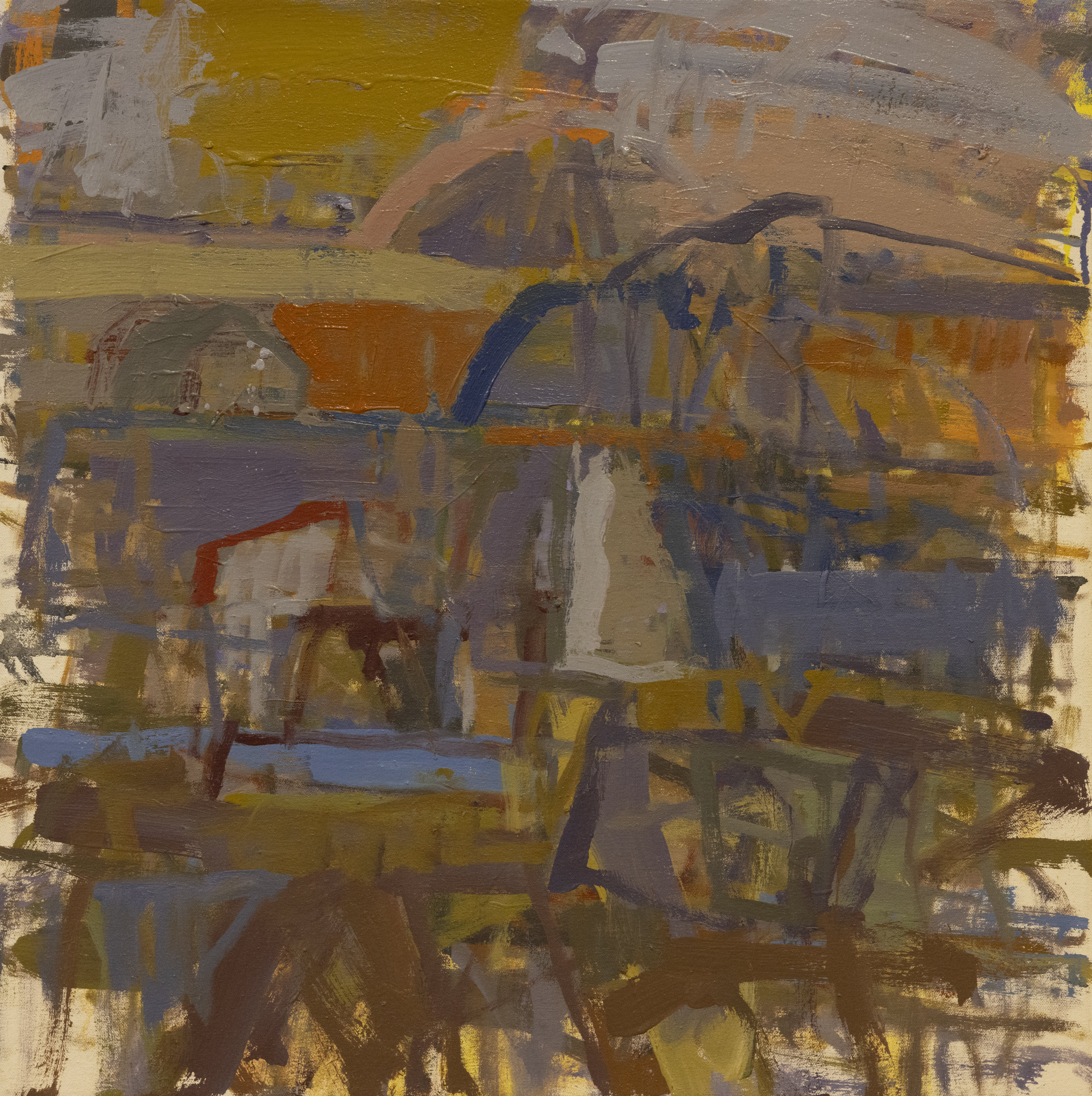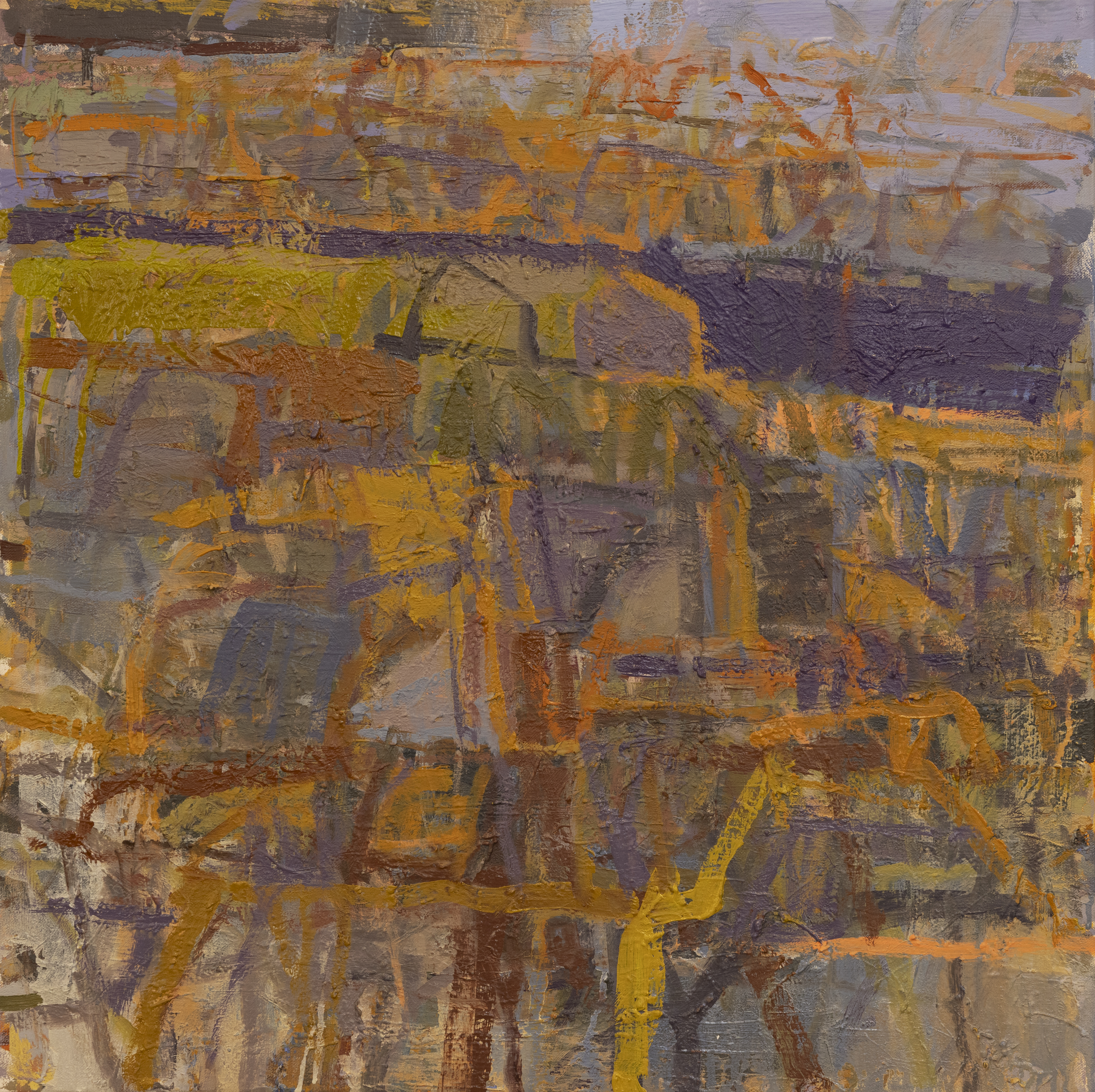 My process begins with repetitive observation—doing on-site studies in the same location and working from them in the studio for a year or longer. This allows me to fully experience and understand the intimacies of place: the particularities of light, atmosphere, land structures, and color. In particular, I am interested how these qualities change over time, how in the short term, how light and atmosphere change constantly over the course of the day. But, also, I wish to explore long-term, over the years, and even centuries or longer, how histories of people lived out in a location, as well as the physical, geological transformations that transpire, are all embedded somehow within the landscape.