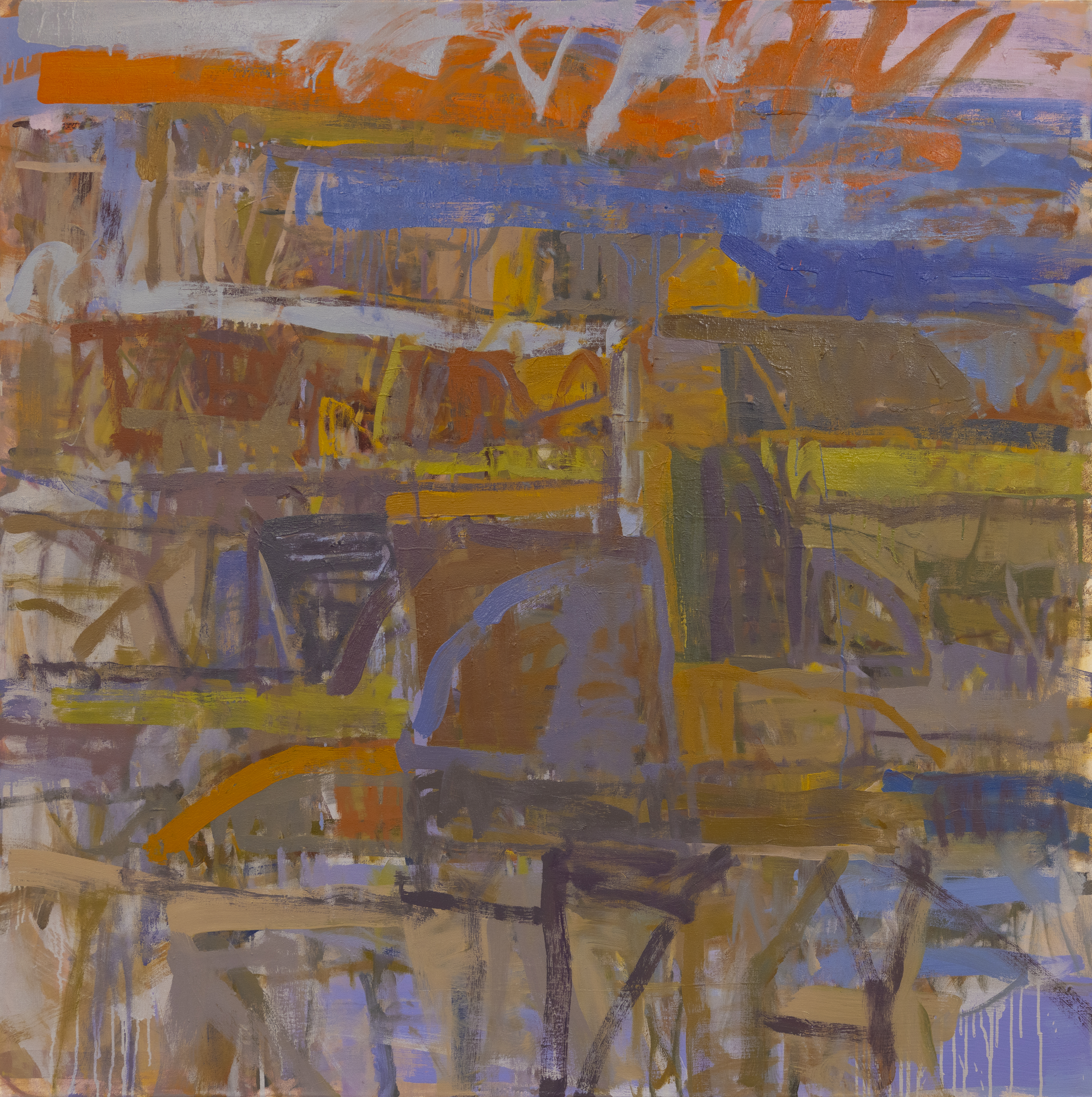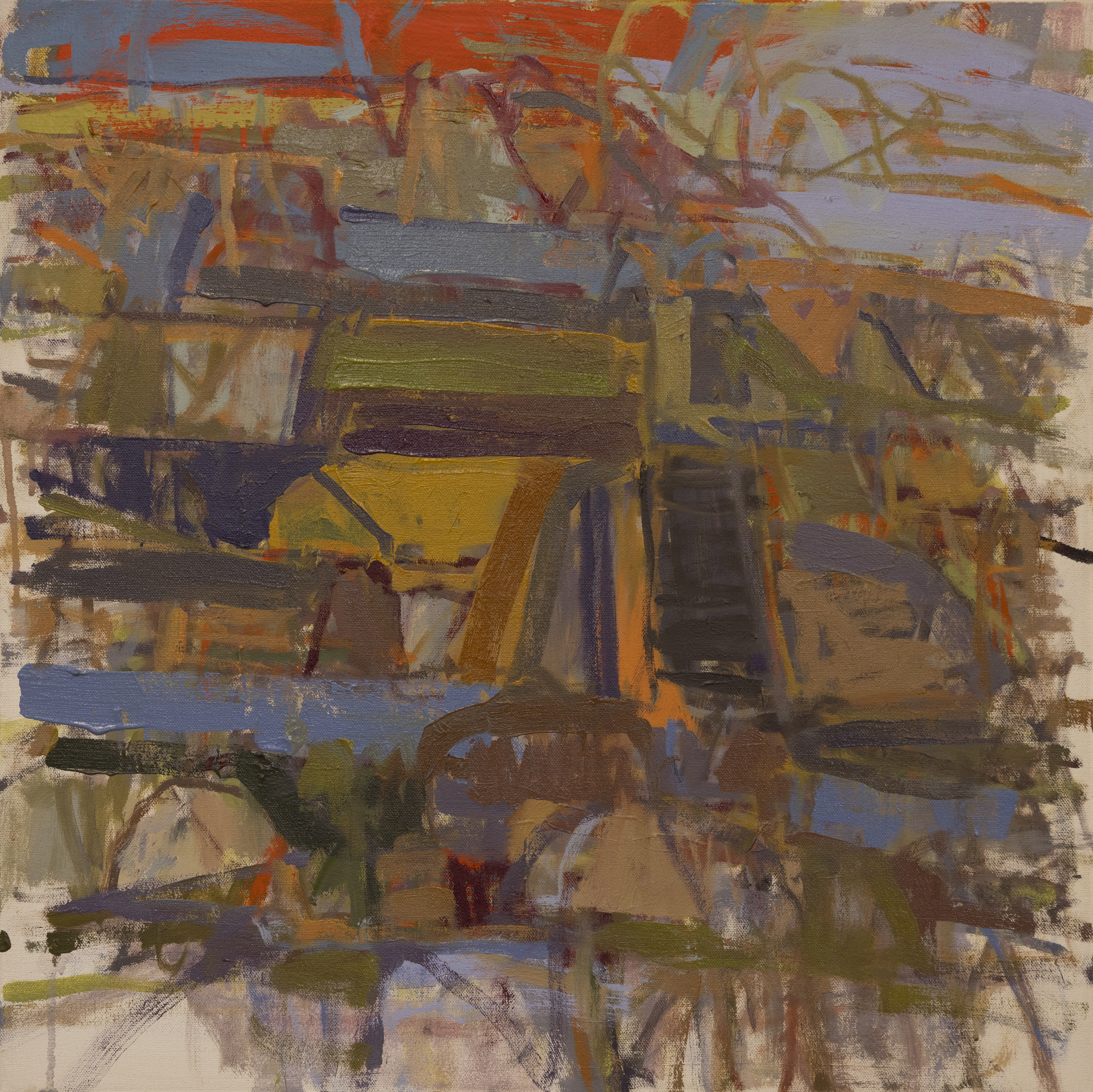 How I make these paintings reflects this as they are constructed in layers, a process that is additive and reductive. I put the paint on, take it off, and wipe more away; there’s a lot of erasure. This imitates the way in which a landscape is altered by erosion and by layers buried over time.