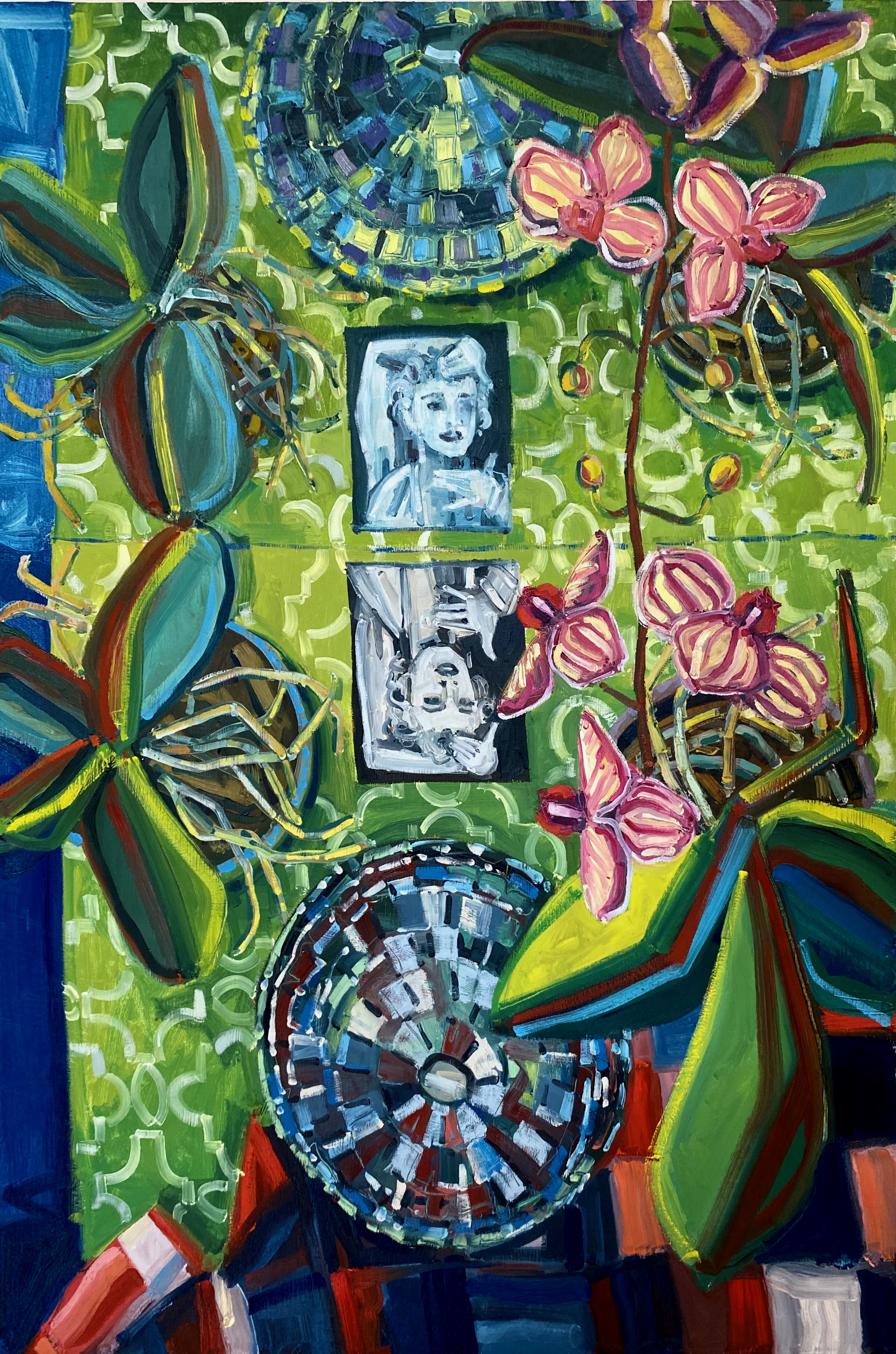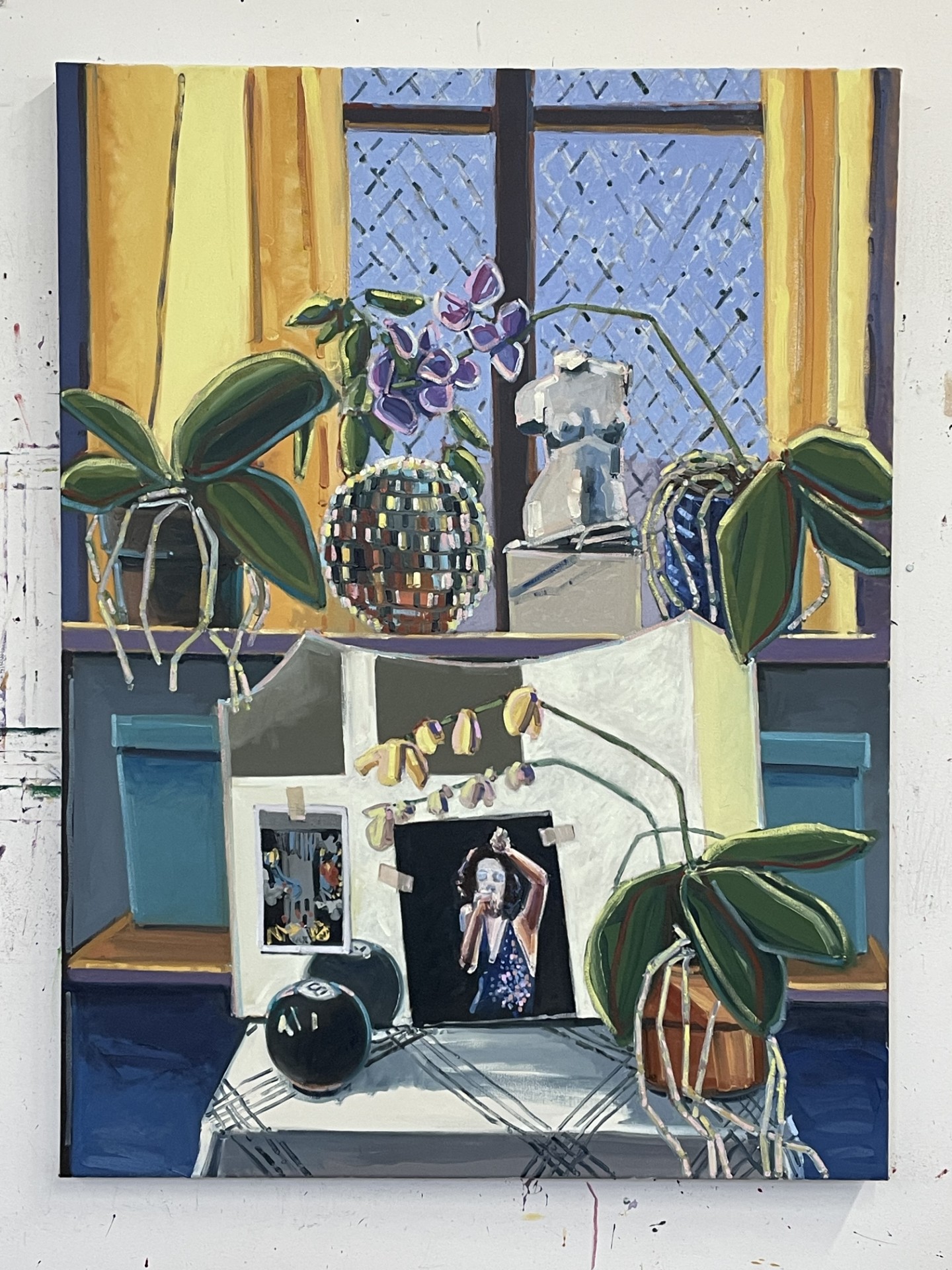 In my work, I explore the picture plane as a dynamic space for examining identity, fluidity, and self-reflection. Mirrors and windows function as both literal and metaphorical boundaries, framing the complex interplay between interior and exterior worlds. The mirrored surfaces in my pieces encourage viewers to reflect on themselves within the artwork, inviting questions about self-perception and the fractured nature of identity.
