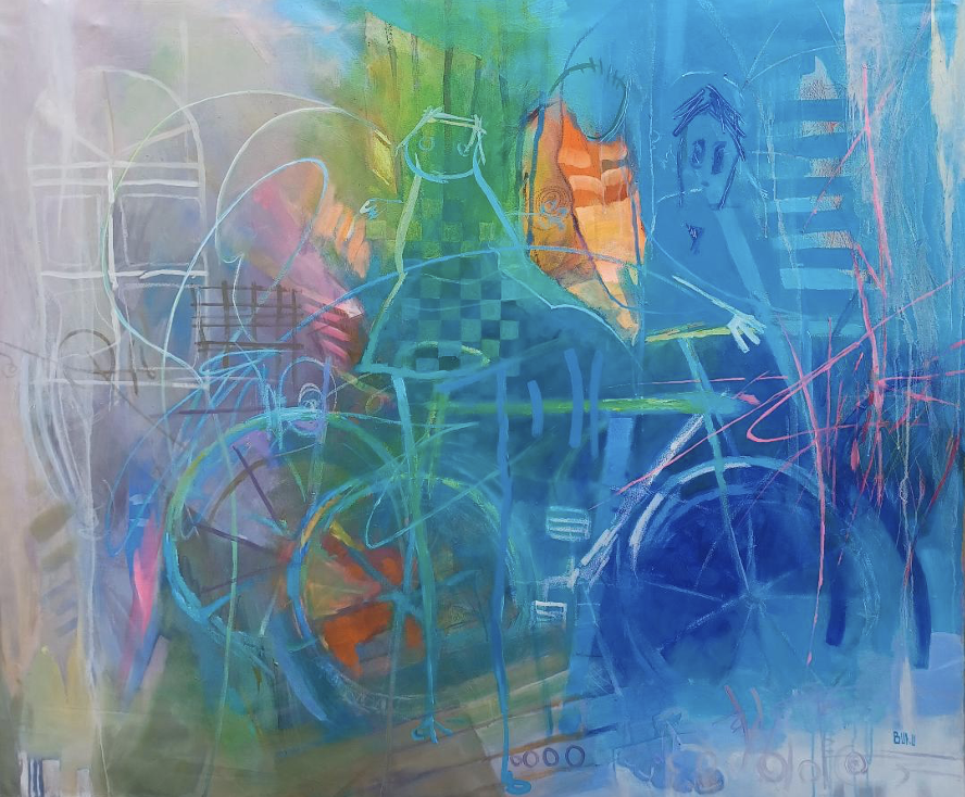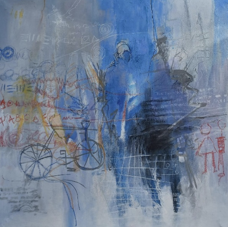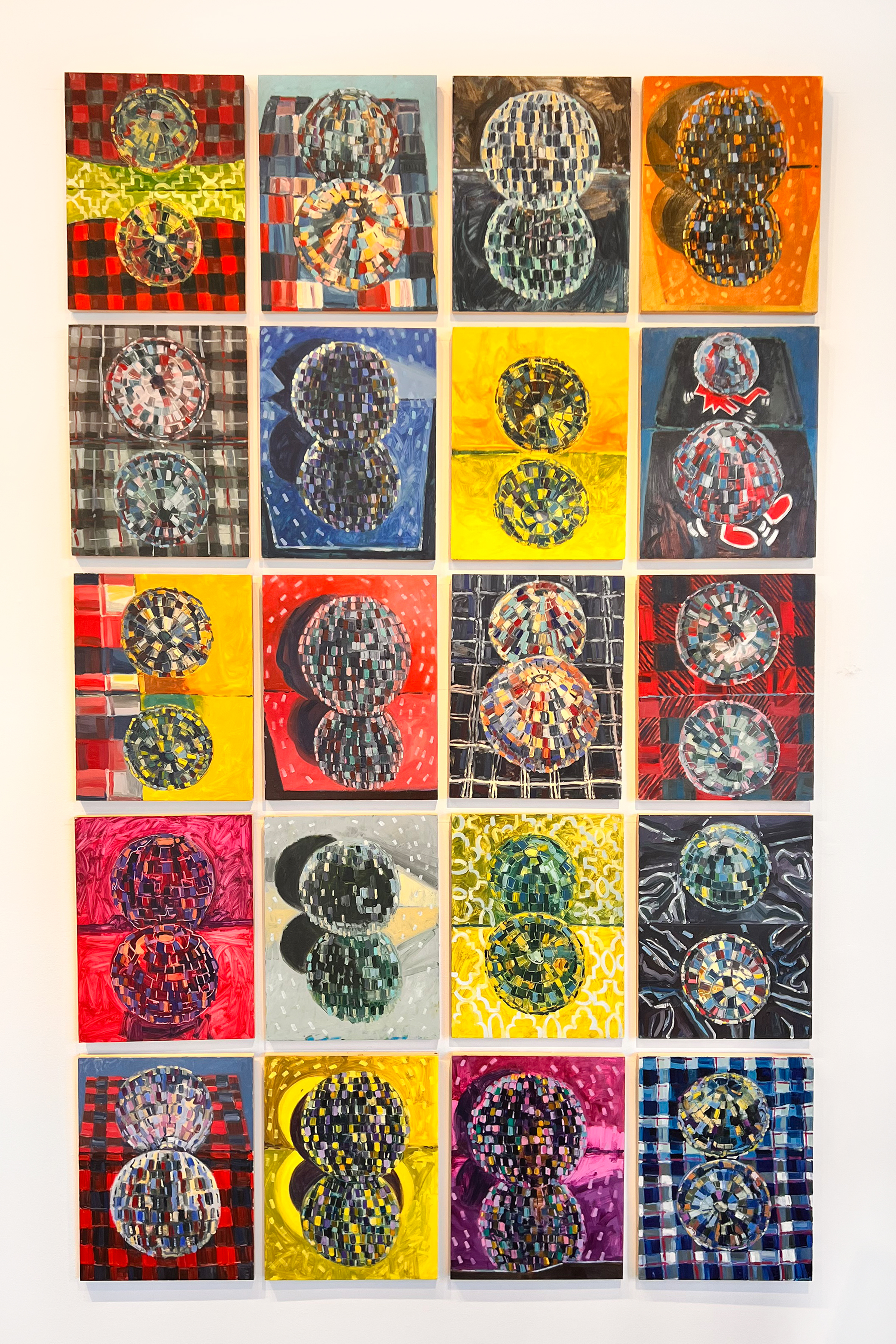 Textile patterns—especially those that mimic plaid, and other woven designs—introduce a tactile element, softening the rigid frame of the picture plane and echoing the textures and layered identities we all wear. These fabrics become windows of their own, suggesting that, just as in life, patterns reveal themselves through repetition, overlap, and transformation.