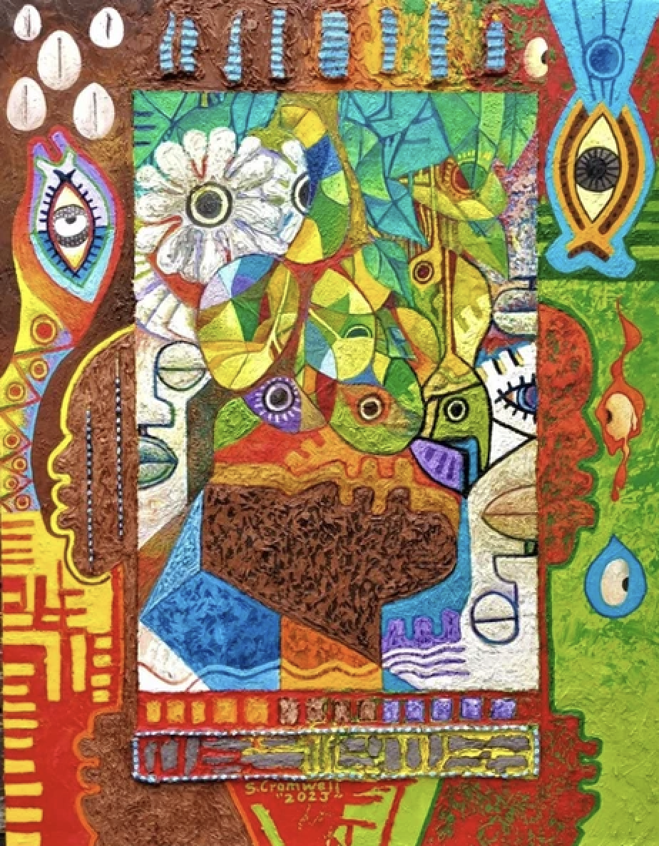 Most of the symbols in my work are used metaphorically and vary in interpretation based on the context in which they are applied. My work embodies all of my experiences as a human being and a Guyanese-born artist. In view of the above, I trust that you find my work visually and spiritually stimulating.