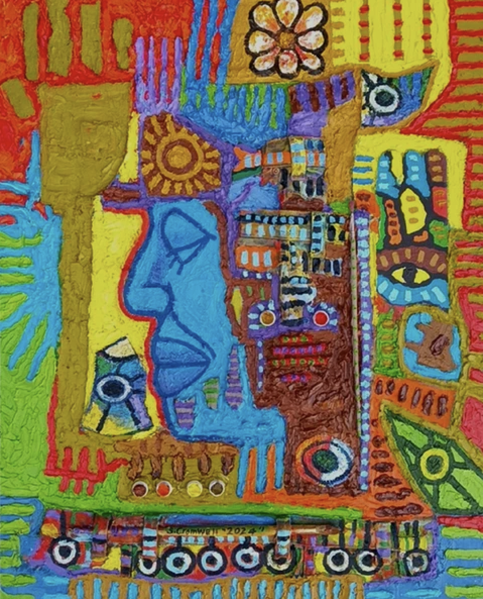 I am a Guyanese-born contemporary visual artist and a retired adjunct art professor who has lived and worked in the United States of America for the vast majority of my adult life. My memories of Guyana are rich and abundant. A visual kaleidoscope from this exotic place is referenced in my work. These references serve as visual footnotes to my artmaking practices by allowing me a rich palette of sites to draw from. Saturated colors and patterns reveal themselves in my paintings, drawings, sculptures and collages. Sometimes my subject matter is abstract forms while others are about myself. My self- portraits are autobiographical and mythical mirrors through which I’m able to reflect upon from my past by reminiscing about the Guyana that I once knew as a child.
