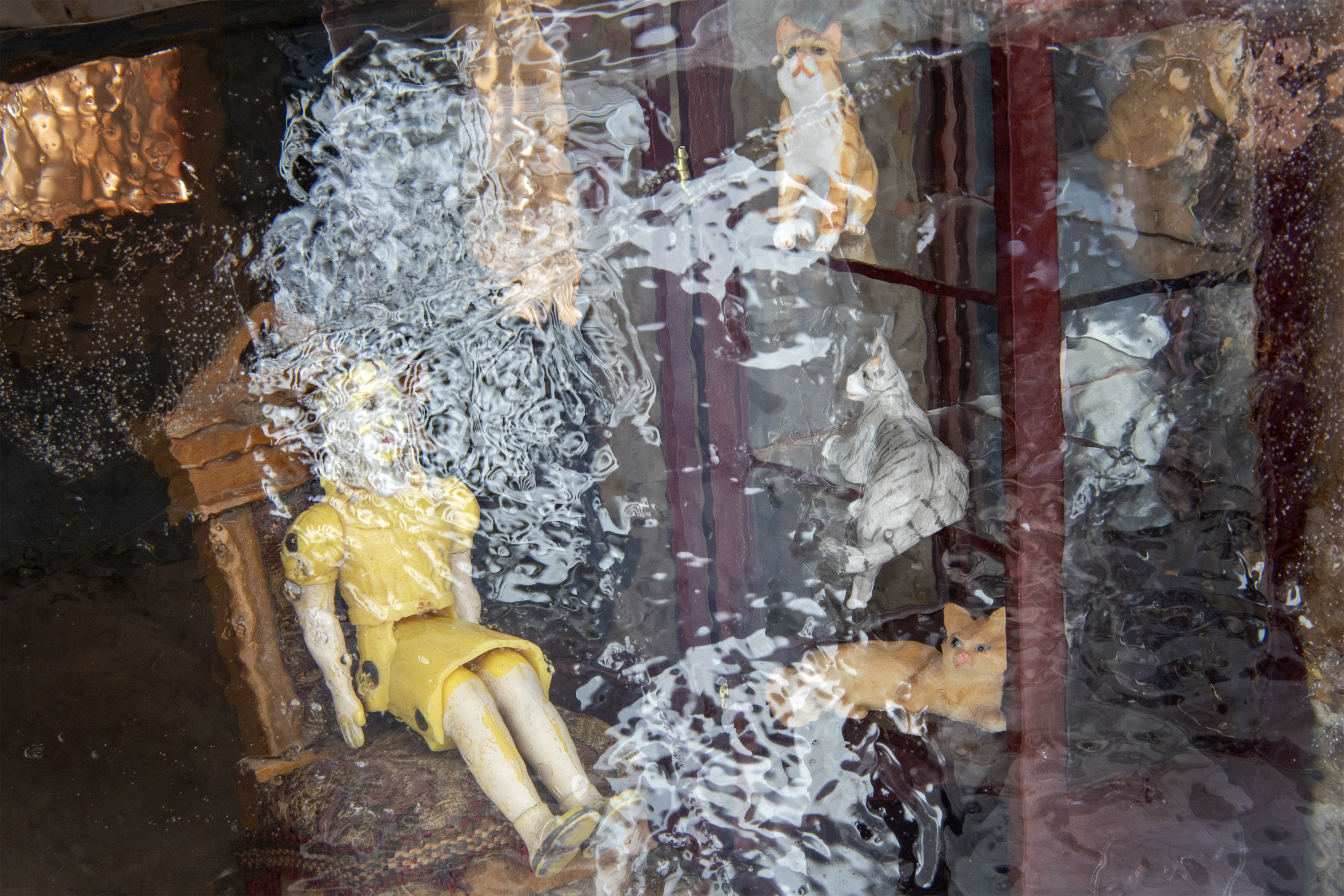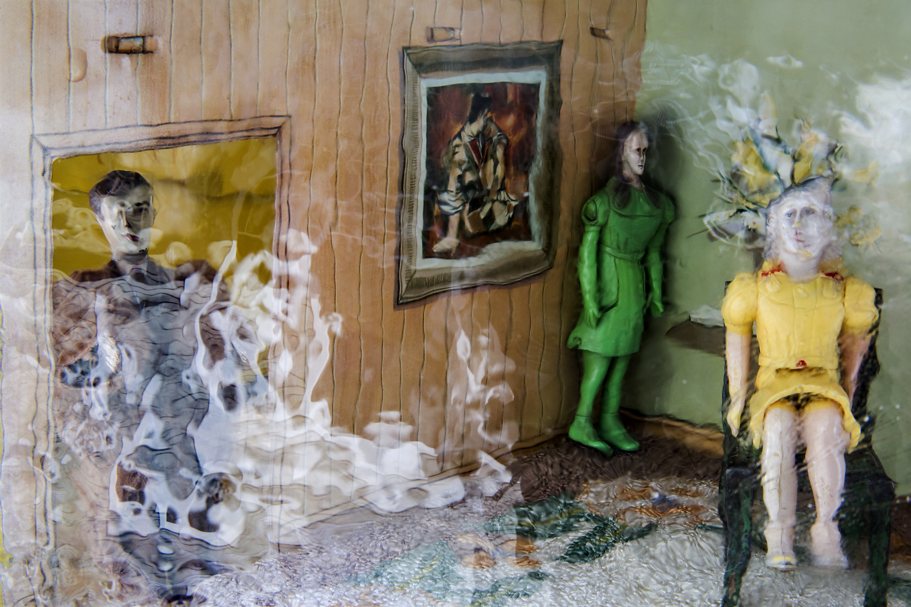 I work with a mass-produced family of dolls from the 1950s—the embodiment of an idealized middle-class culture, now relegated to tag sales and Ebay. Once models of conformity, years of handling have worn away their veneer of polite reserve and privilege, revealing emotional truths hidden just below the surface. While only four inches tall, they have power beyond their size, and my complex images address both individual and cultural histories.