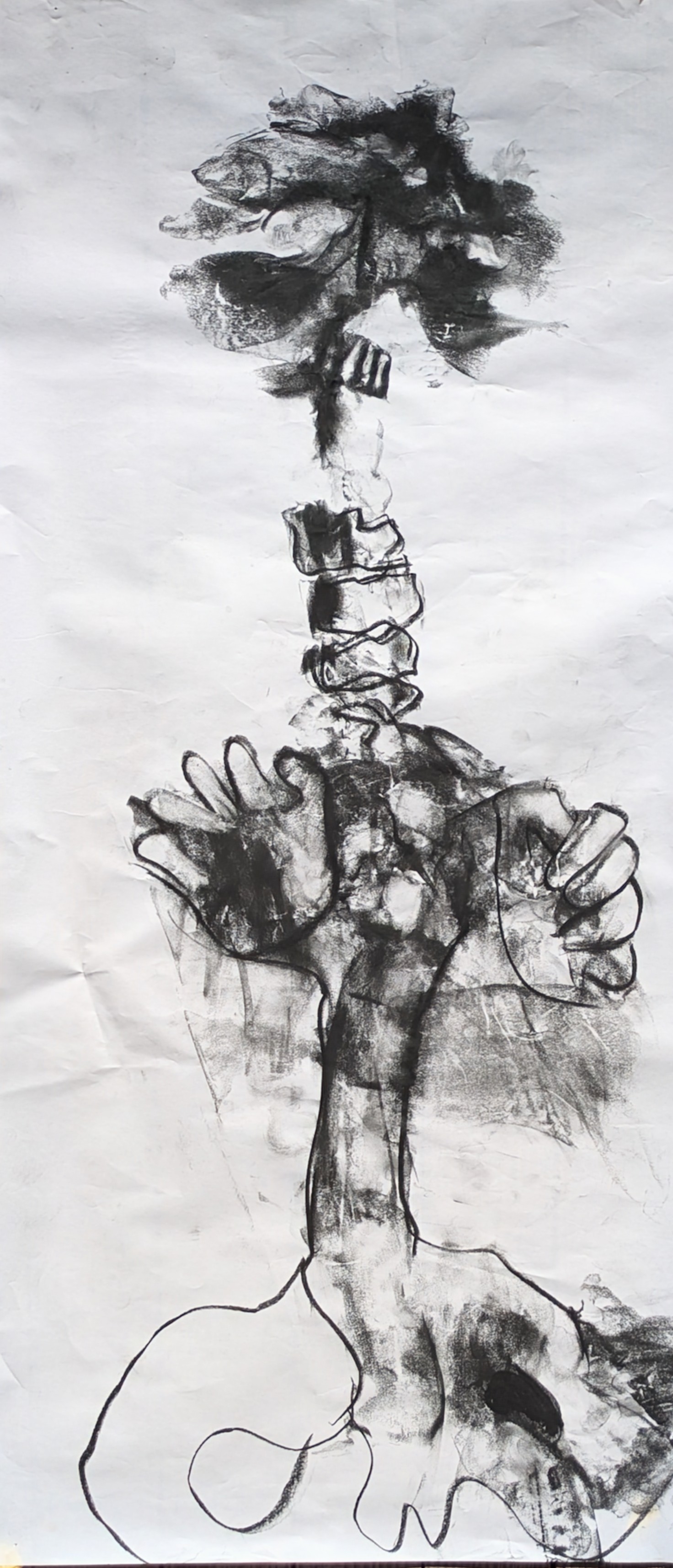 These drawings are made with black and colored charcoal on paper. I often use vellum because it’s