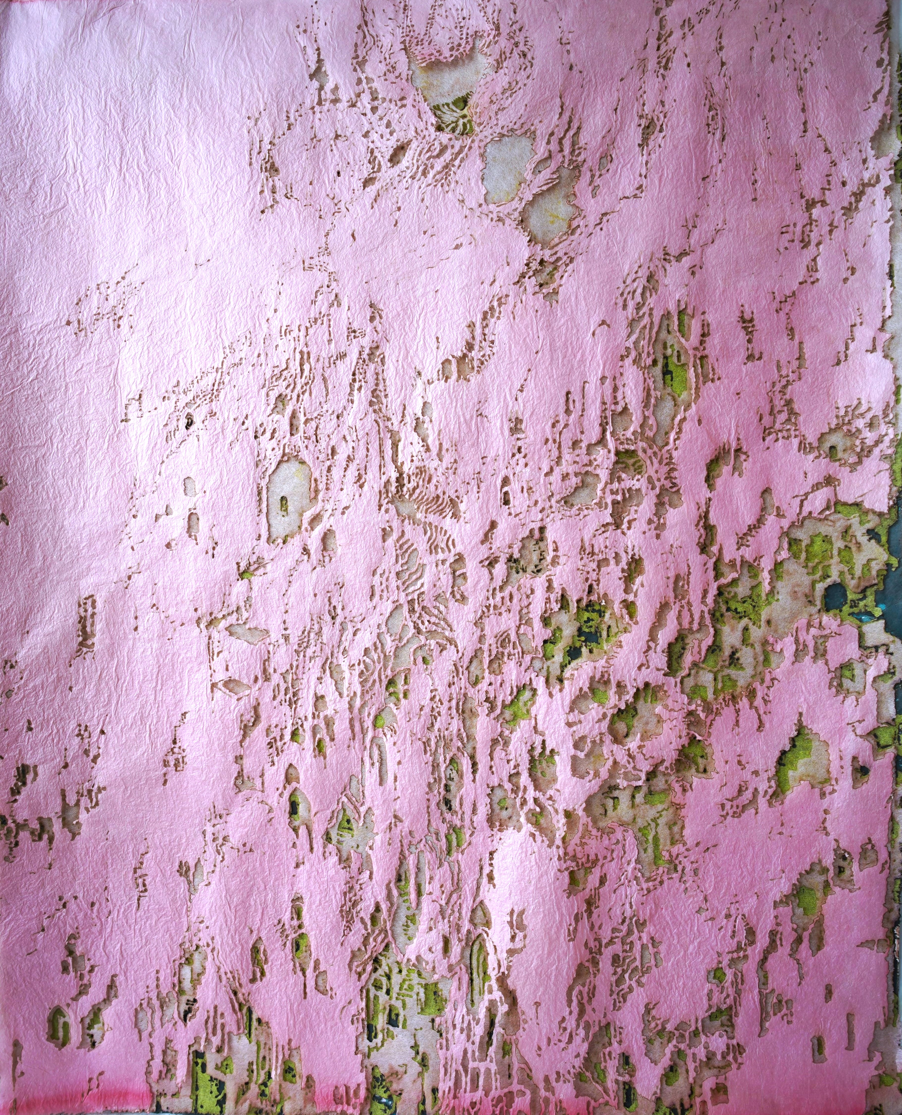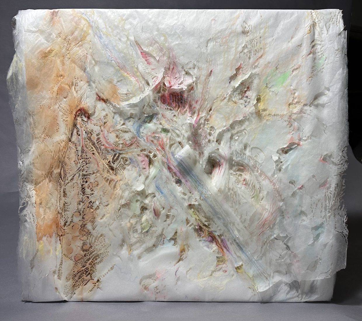 Overarching themes within my work include ties to memory, various aspects of the body, and the natural world. I am drawn to multiple components of mixed-media, using various papers, organic and inorganic fibers, powders, pigments, dyes, and found objects.