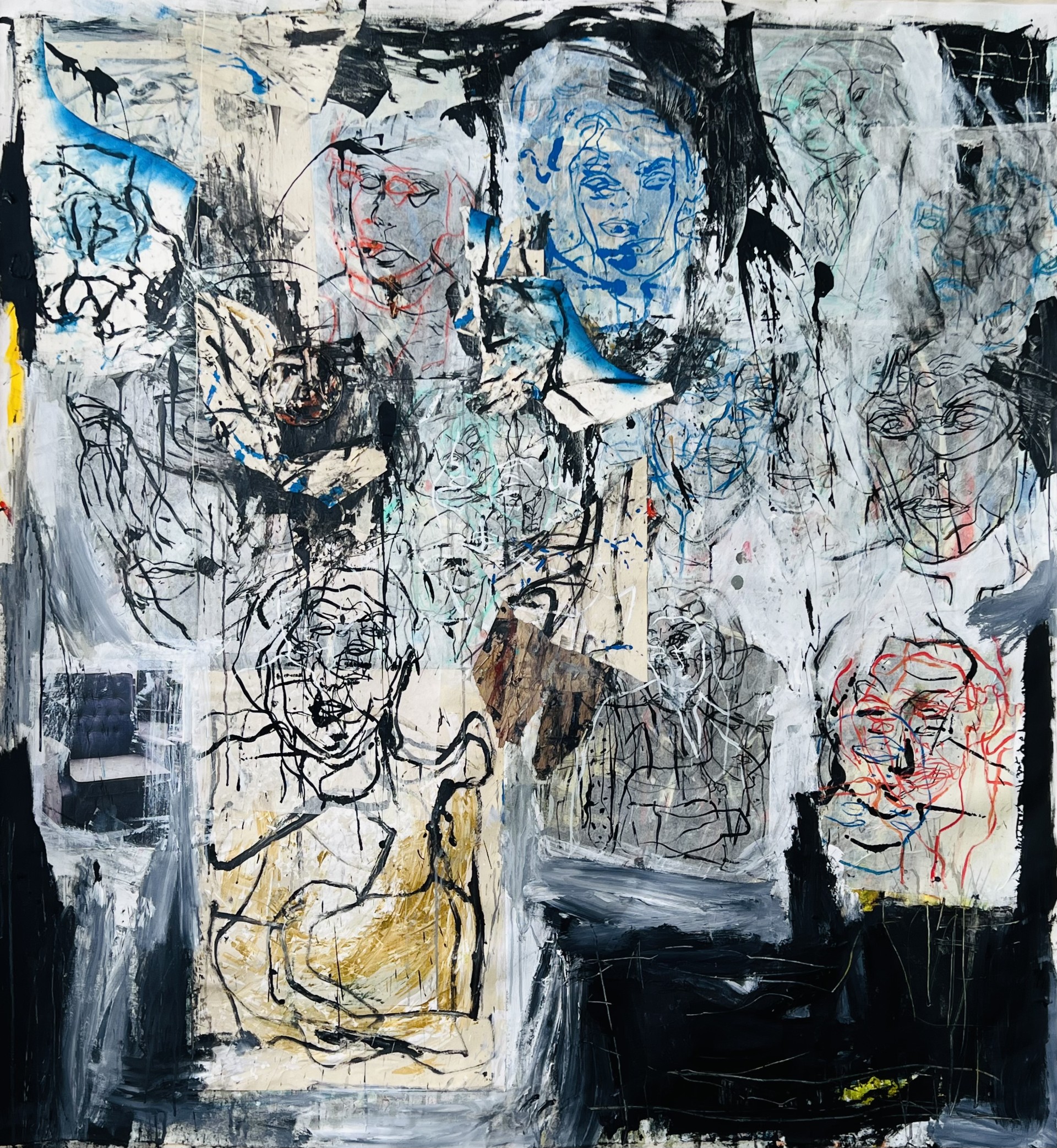 This work comes from the frustration of how my memories form, sharpen, and blur in my mind. By coalescing an image through fragments, ink, paint, and other tools, I began to build an ephemeral language.