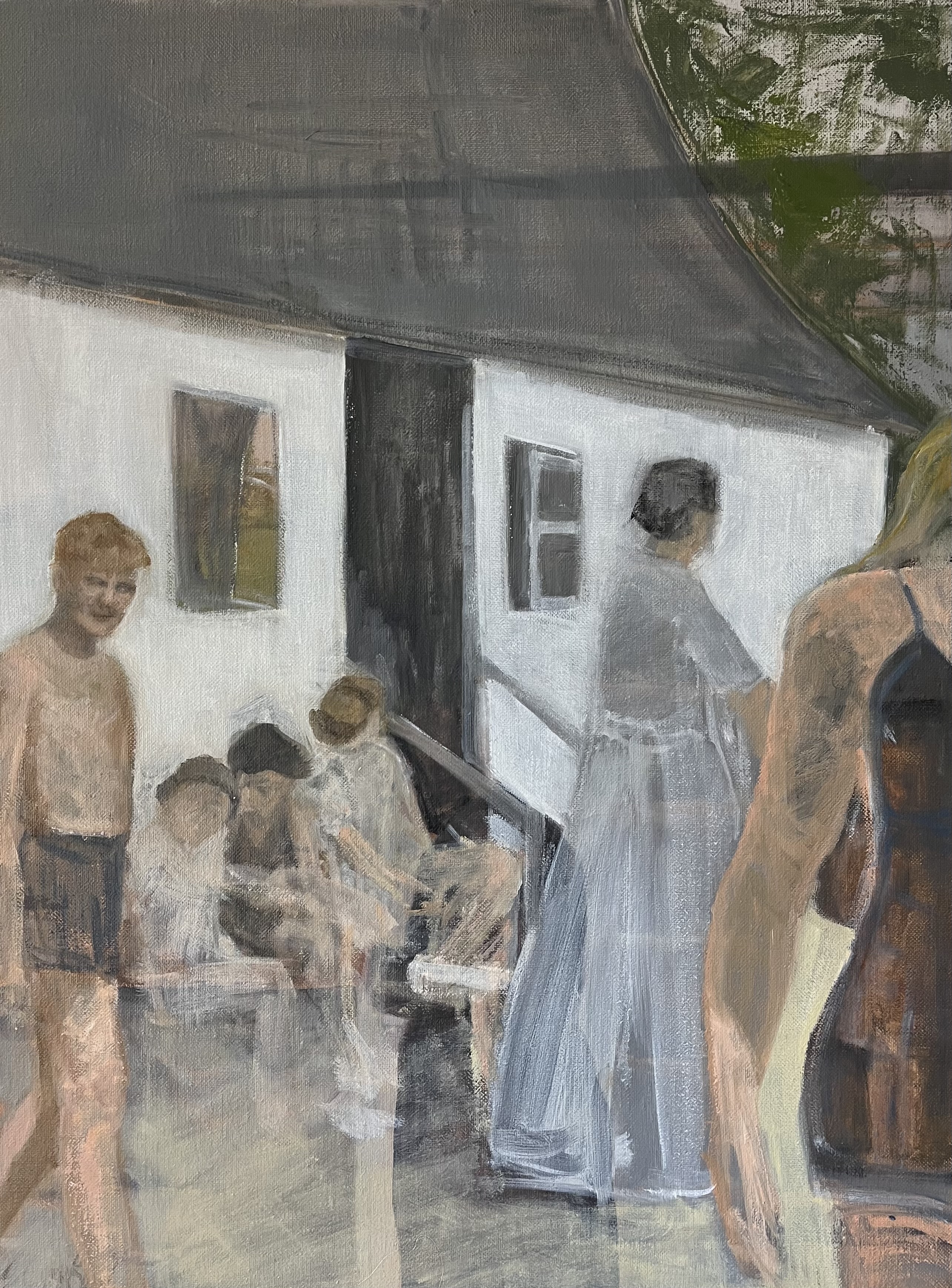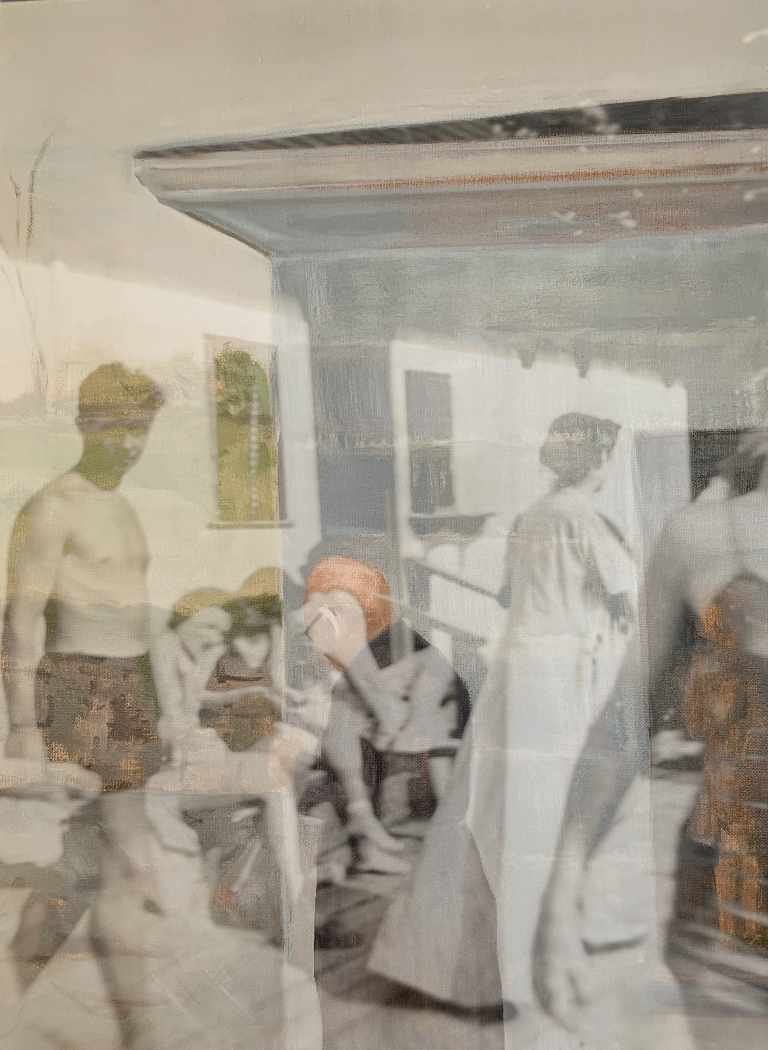 In her new painting and works on paper series, Family Ghosts, Sara Conklin explores the complexities of memory and the past. Working from old photos and layering over existing paintings, Conklin creates a transparent multidimensional effect that reflects the influence of nostalgia and truth on our personal histories. The works on paper in this series challenge the viewer to question what we can truly trust in our memories and investigate the ways in which our recollections of the past are impacted by emotion, time and experience. Through this exhibit she invites viewers to reflect on their own memories and the ghosts that may linger in their own history.