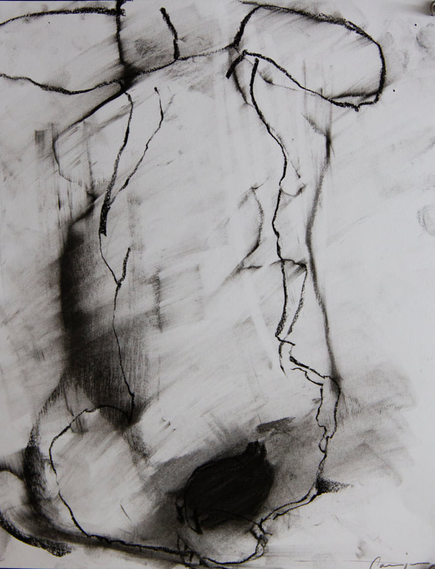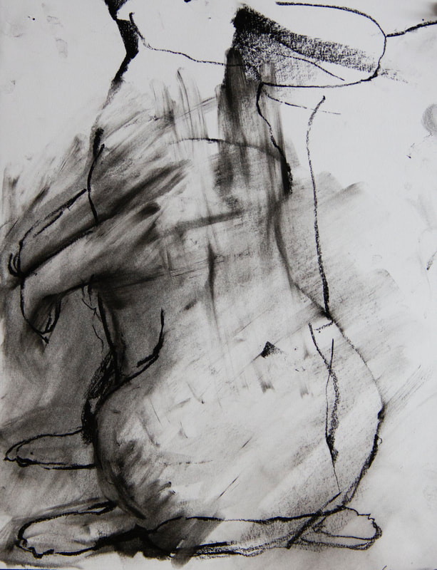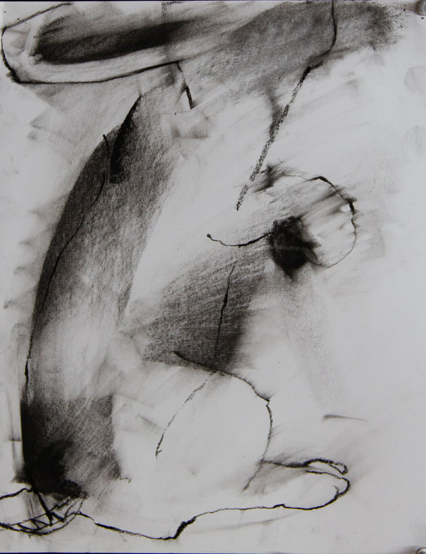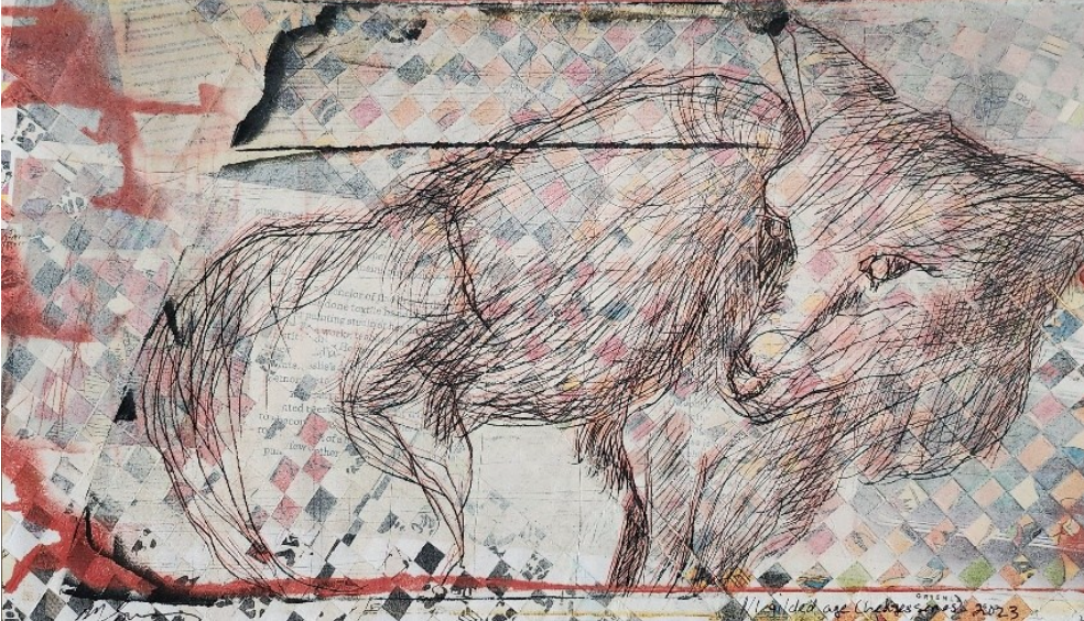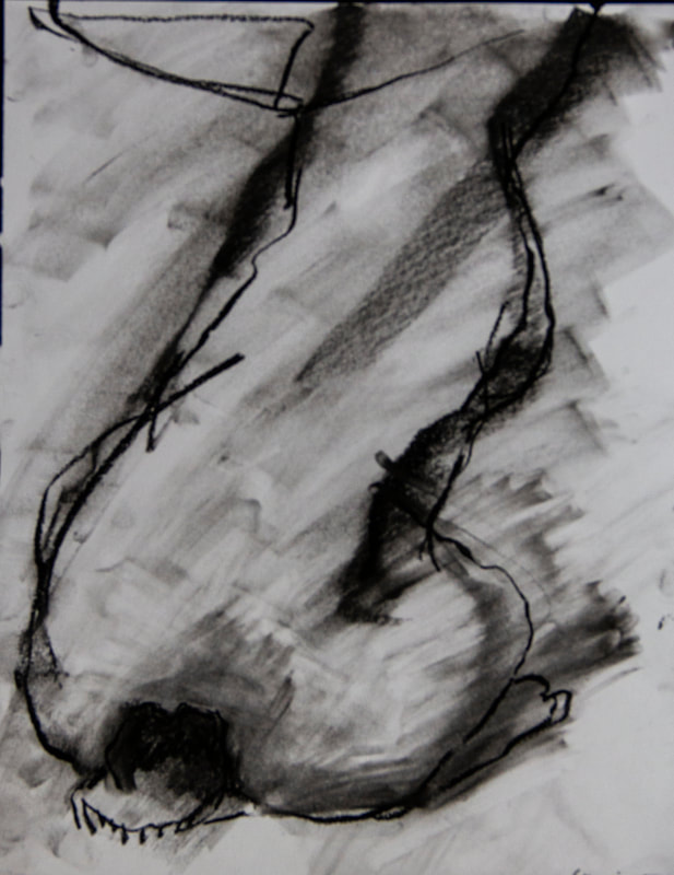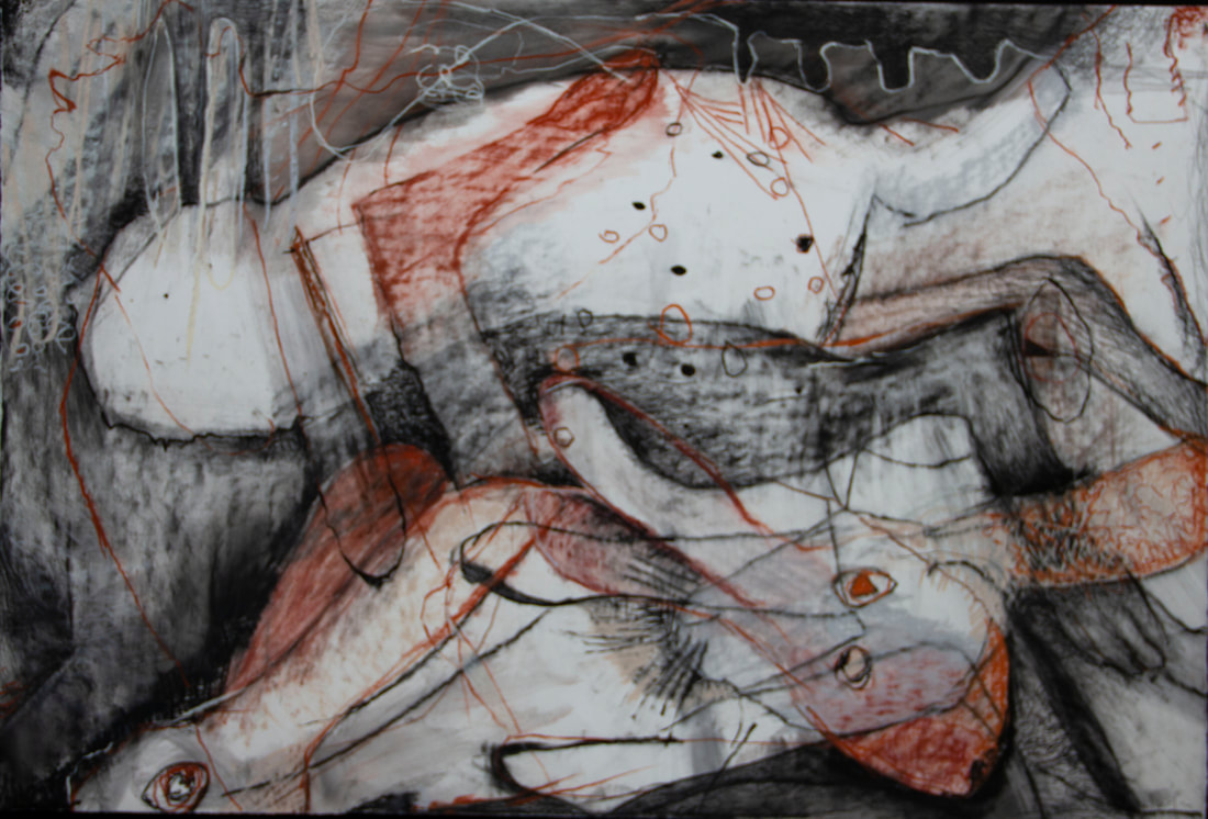The title of this drawing comes from the Irish saying “To Start a Hare Running” which means when an action you take triggers an onward problem, usually unforeseen and out of your control. The concept of an animal standing in for humans causing trouble interested me and I worked across these four panels with layering and erasure building chaos and confusion.