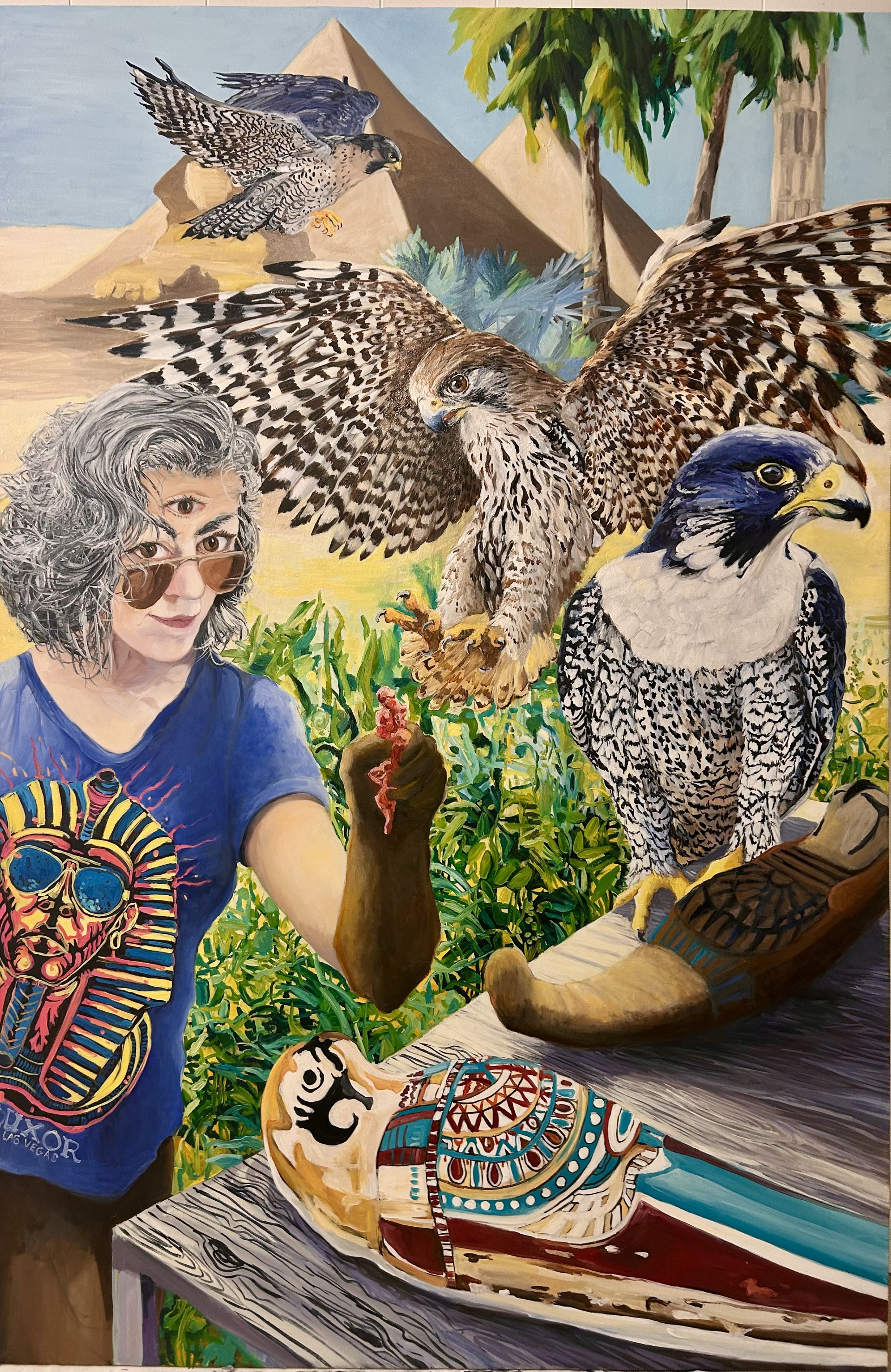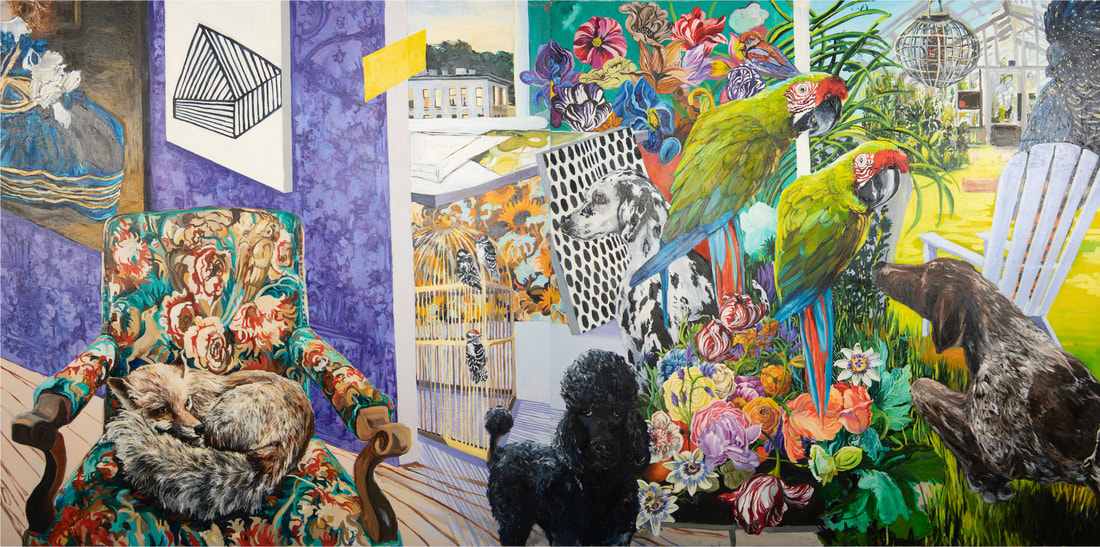 Inspired and informed by the conceptual template of Dutch Still Life, where disparate species of flora and fauna meet on the same plane, worlds collide, my paintings are about our contemporary personal temporality. Our situation now is a culture of overrun, excess, and saturation. My work is a reconciliation with living in our contemporary culture, where one moment we are seated in front of a computer screen, receiving information from all parts of the planet in a blink, and the next moment we are asked to wake from our reverie of on-screen existence and navigate the real world.