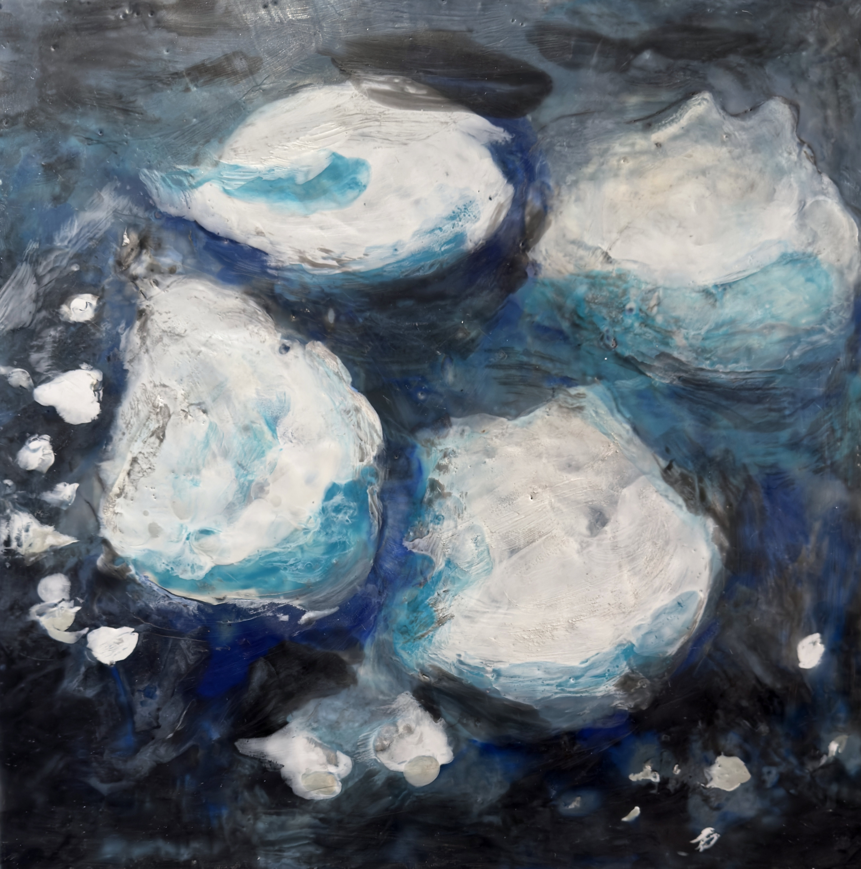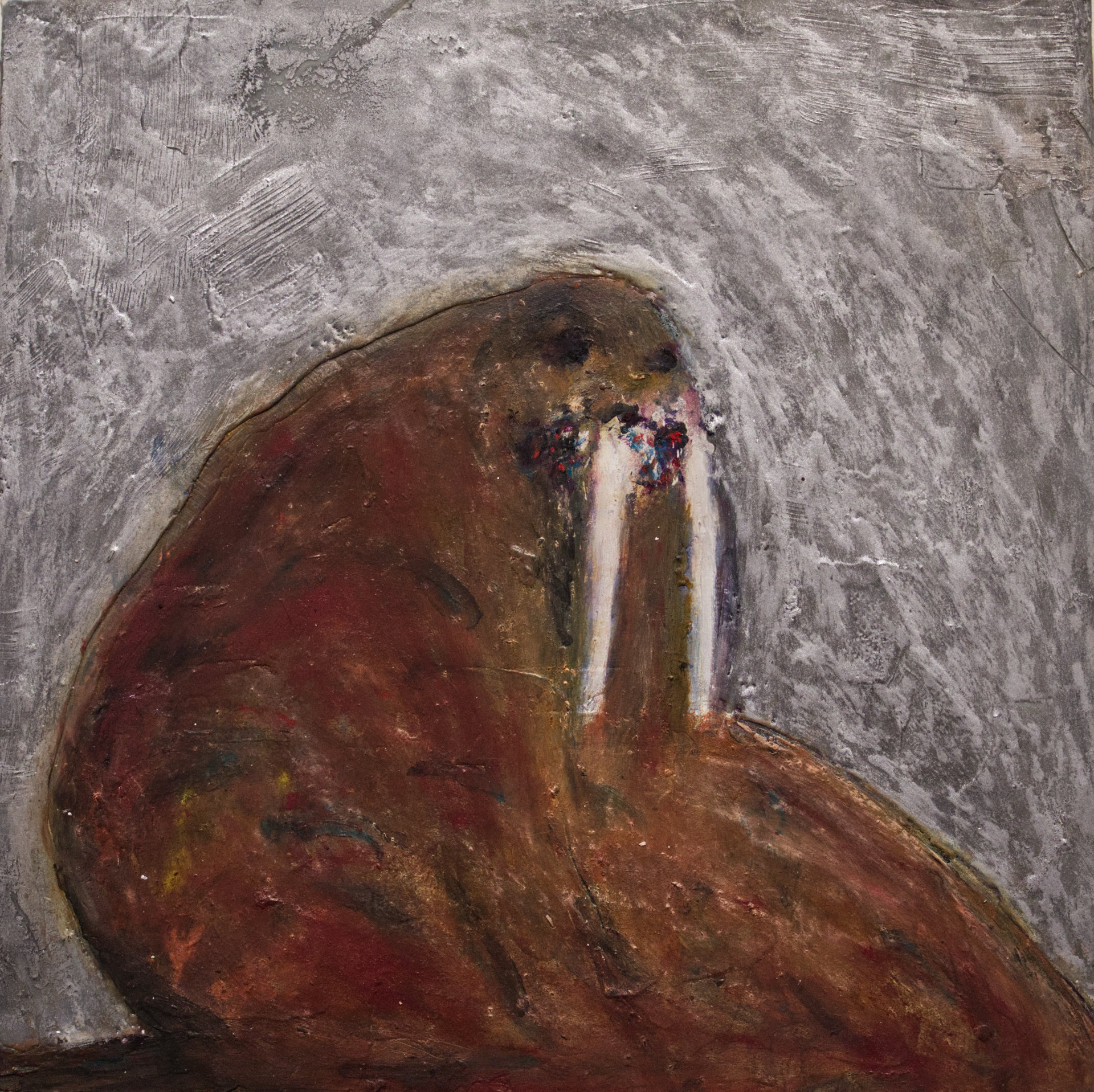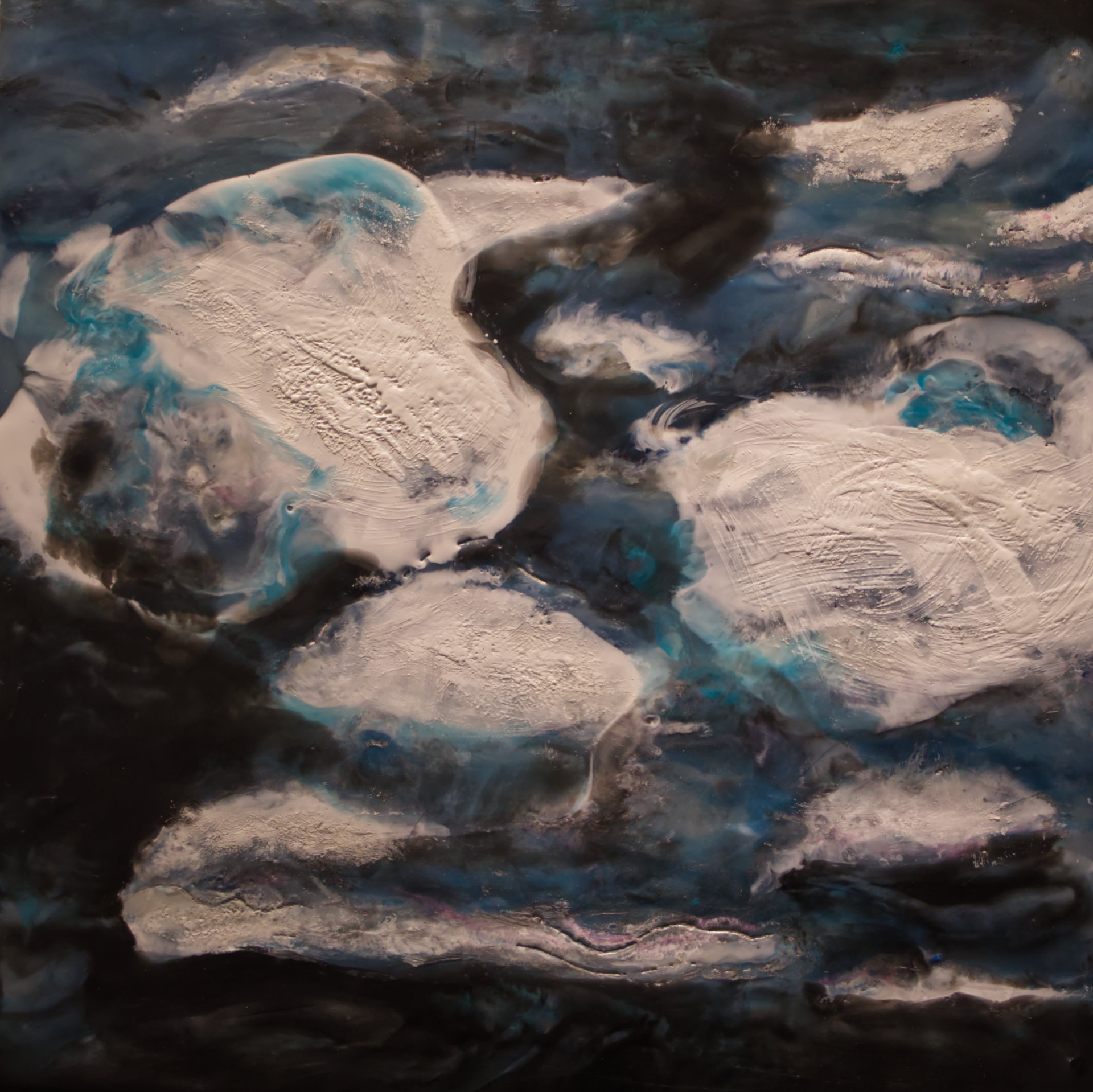These paintings aim to capture the feelings of that time through a mix of abstraction and representation; documenting the beauty of the place, transforming fastest on the planet because of climate change. They are meant to echo religious icons because to me there is something ineffable and sacred about the high latitudes and the power and fragility of the environs and its inhabitants. I am captivated by the beauty of the place and full of grief for its change.